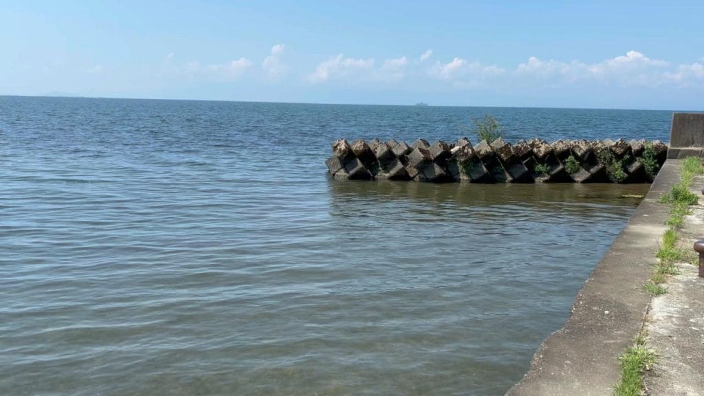 ポイント②は旧プリンスホテル前です。サンドベ-スで魚影は少なかったです。流れ込みがあるので、構造的には良いポイントです。ここから南のテトラ帯から矢倉川河口までは足場が悪いので釣りにくい場所になります。↓