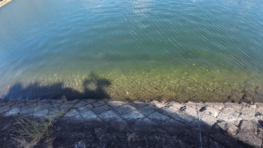 桟橋周辺もバスが付いていますが、子バスやギルが多くてスレている印象です。そこから北側の南郷蛍橋からの流れ込みがあるポイントは流れが速くなりますが、バスが付いていることも多いので、ライトリグで流しながら釣りをしても面白いと思います。 全体的に魚影はまずまずのポイントで、デカいバスも狙えます。川岸は足場が良くて釣りが行いやすいポイントです。