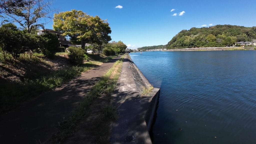 川岸は琵琶湖まで8.2kmの散歩道が整備されているので移動もしやすいです。ここのポイントから北上しても良いポイントが多いので、1日中楽しめる場所だと思います。駐車場(有料)やトイレもあり、コンビニやレストランもあるのでファミリ-でも楽しめると思います。